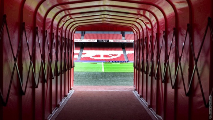 Exemplo de toldo túnel usado no acesso ao relvado em campos de futebol.